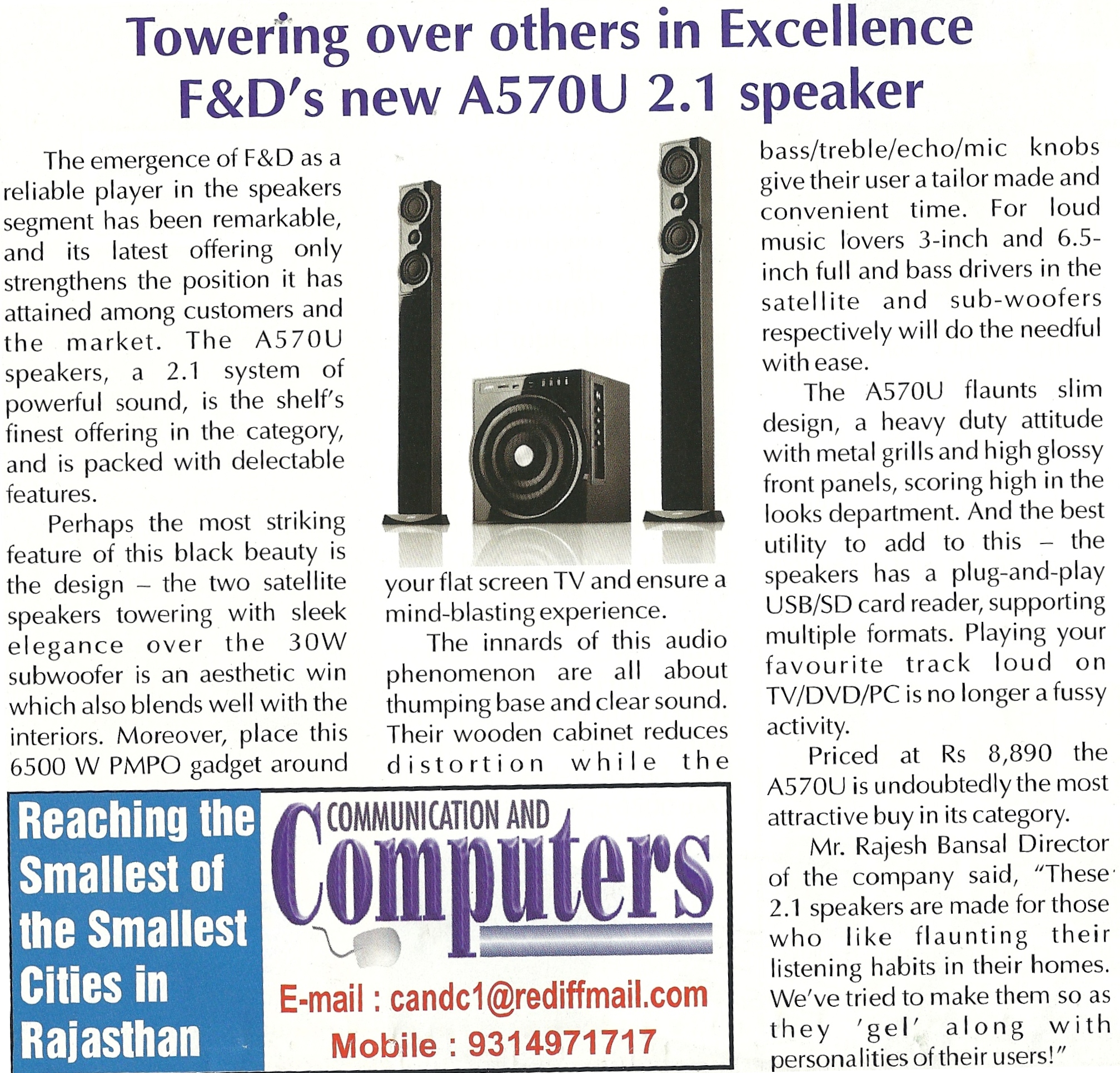 Headline: Towering over others in Excellence F&D's new A570U 2.1 speakers