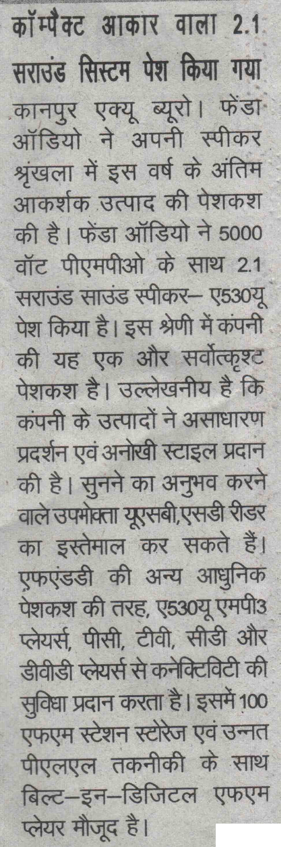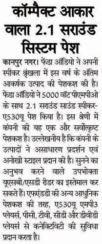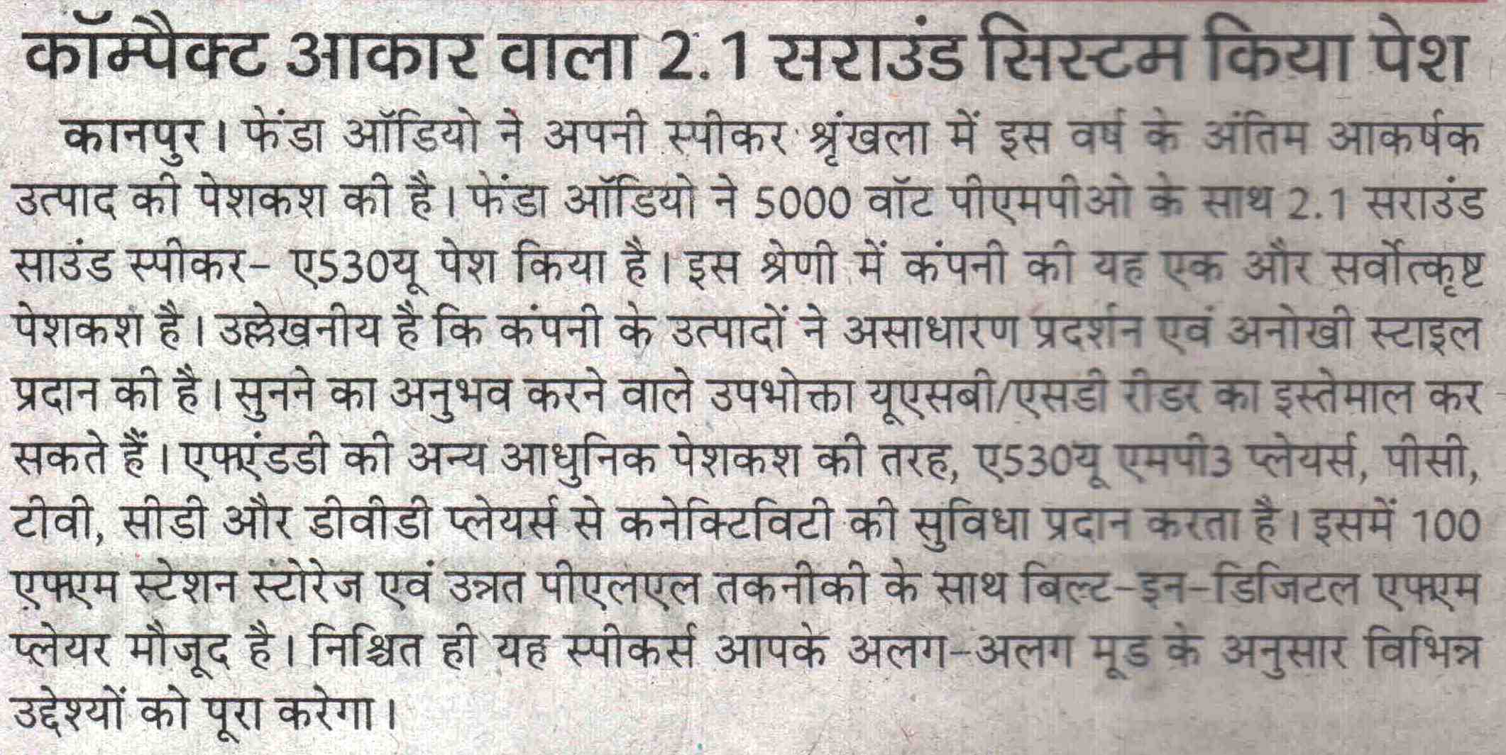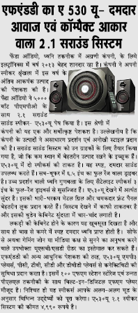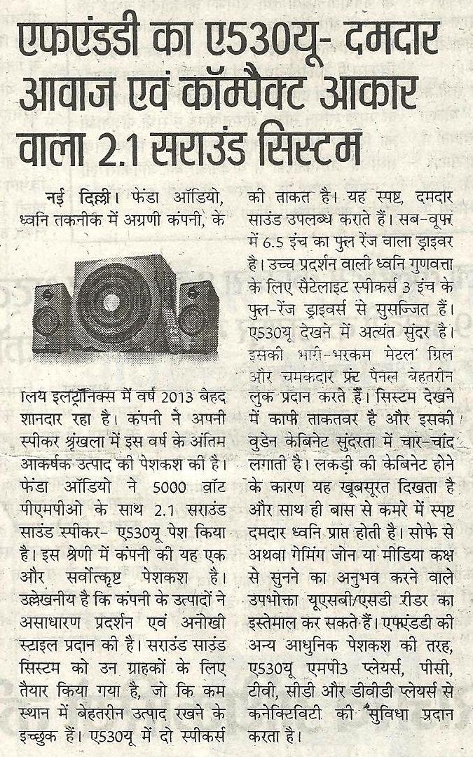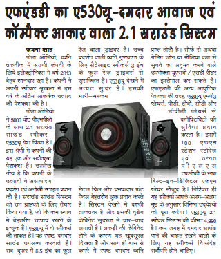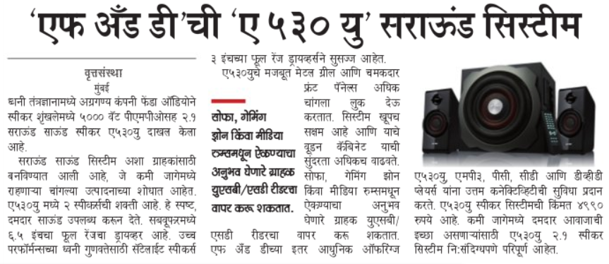 Publication: Dainik Chaitanya Lok Headline: F&D's A530U –A 2.1 Surround System– Powerful sound, Compact Size