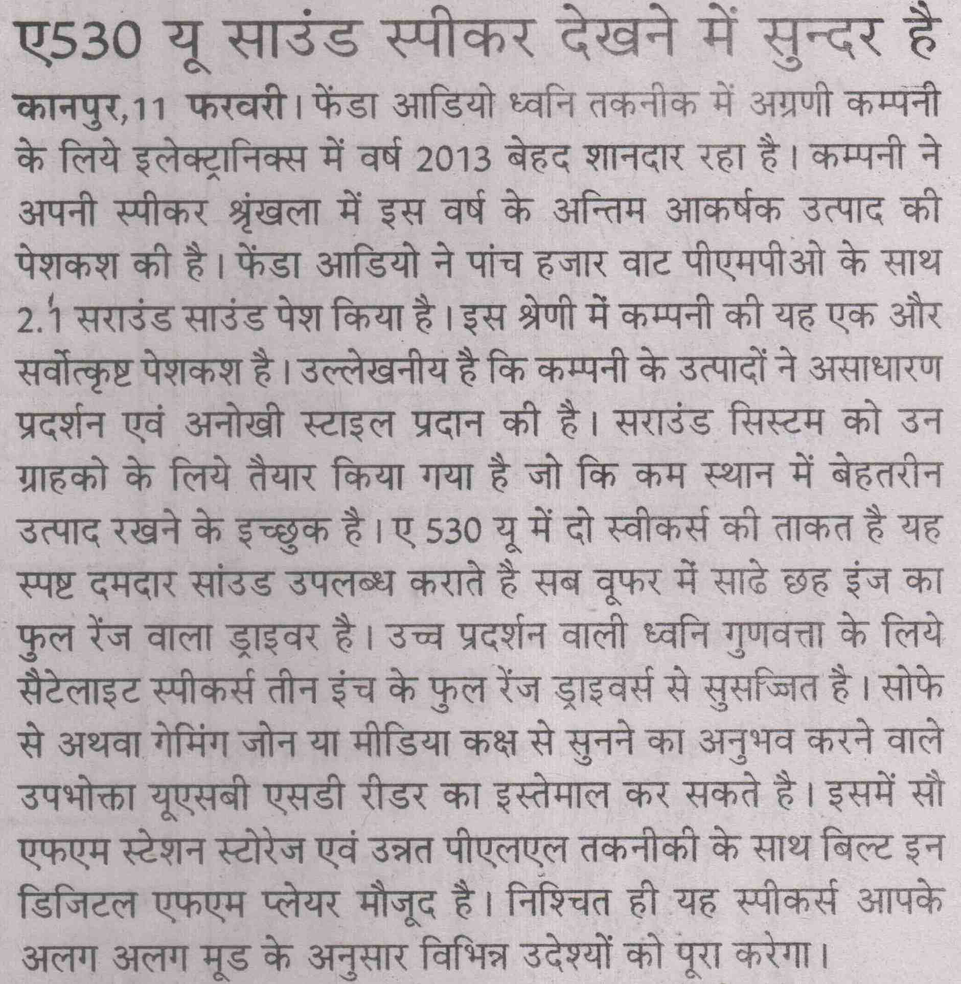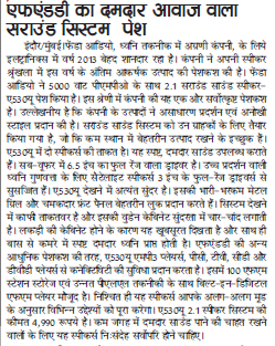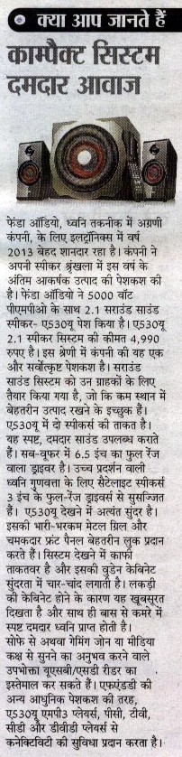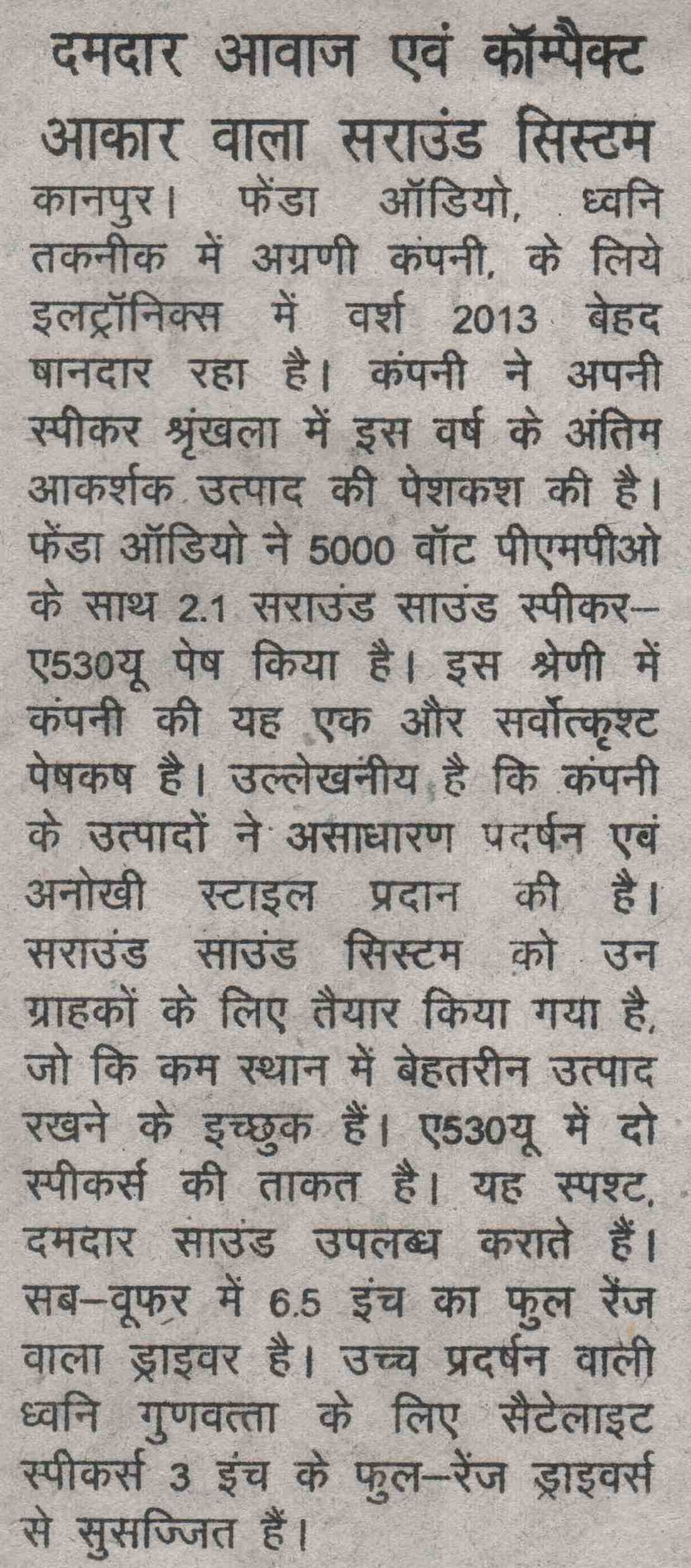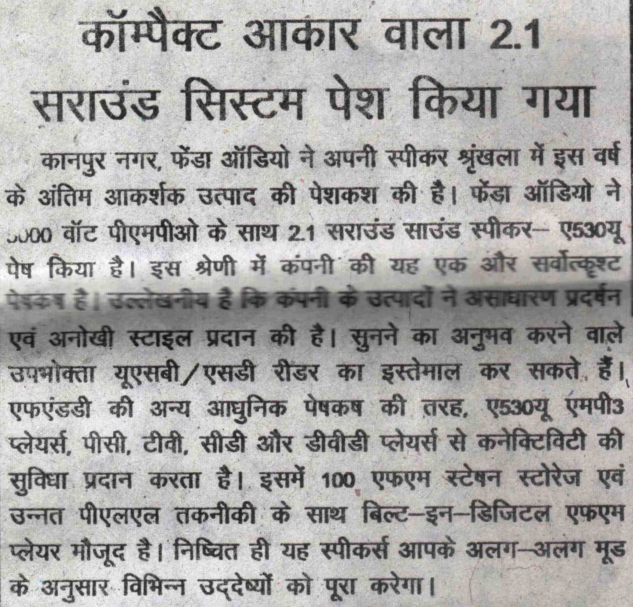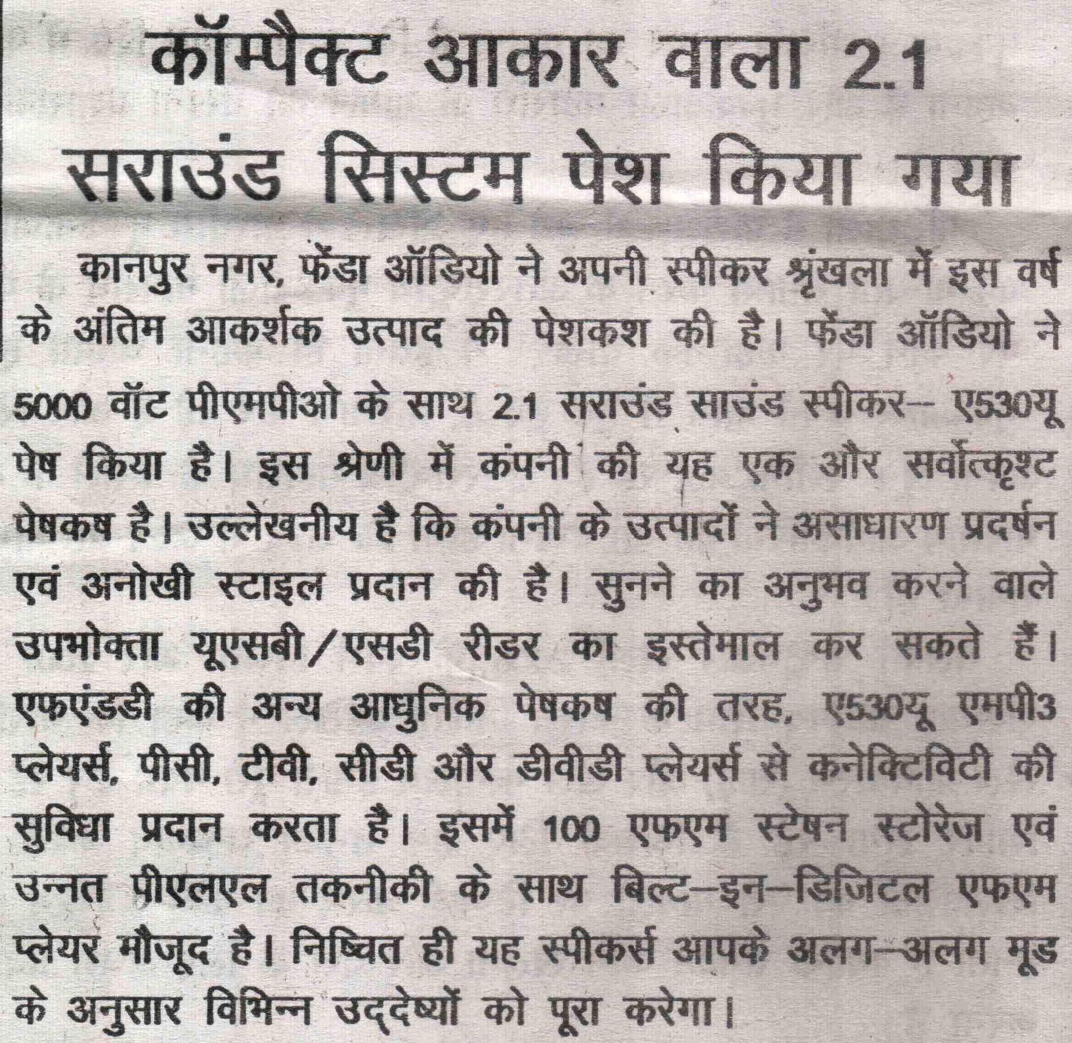Publication: Dainik Chaitanya Lok Headline: F&D's A530U –A 2.1 Surround System– Powerful sound, Compact Size