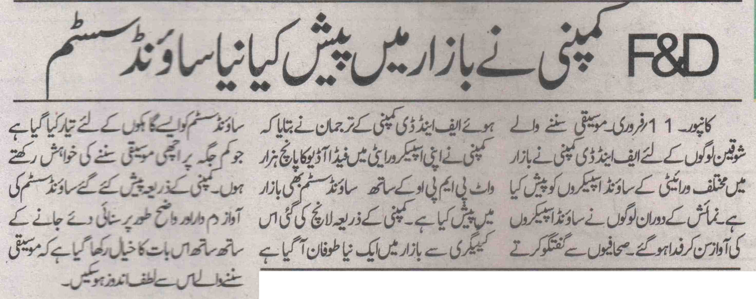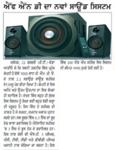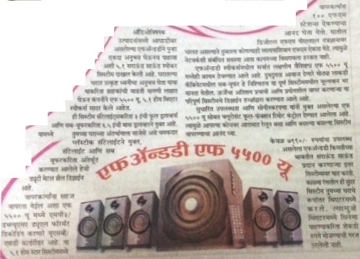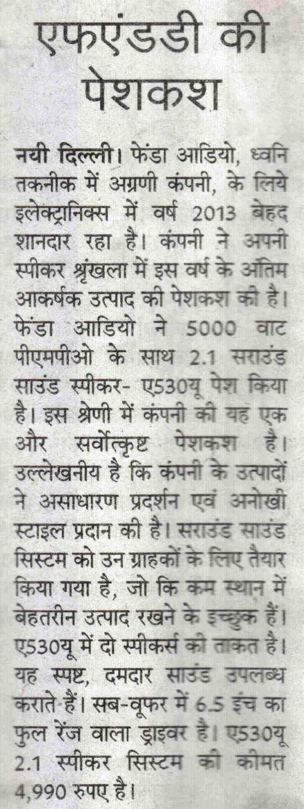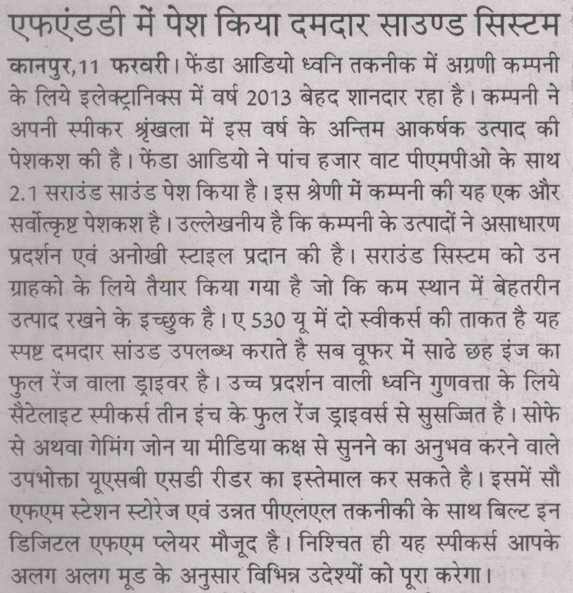 Publication: Dainik Chaitanya Lok Headline: F&D's A530U –A 2.1 Surround System– Powerful sound, Compact Size