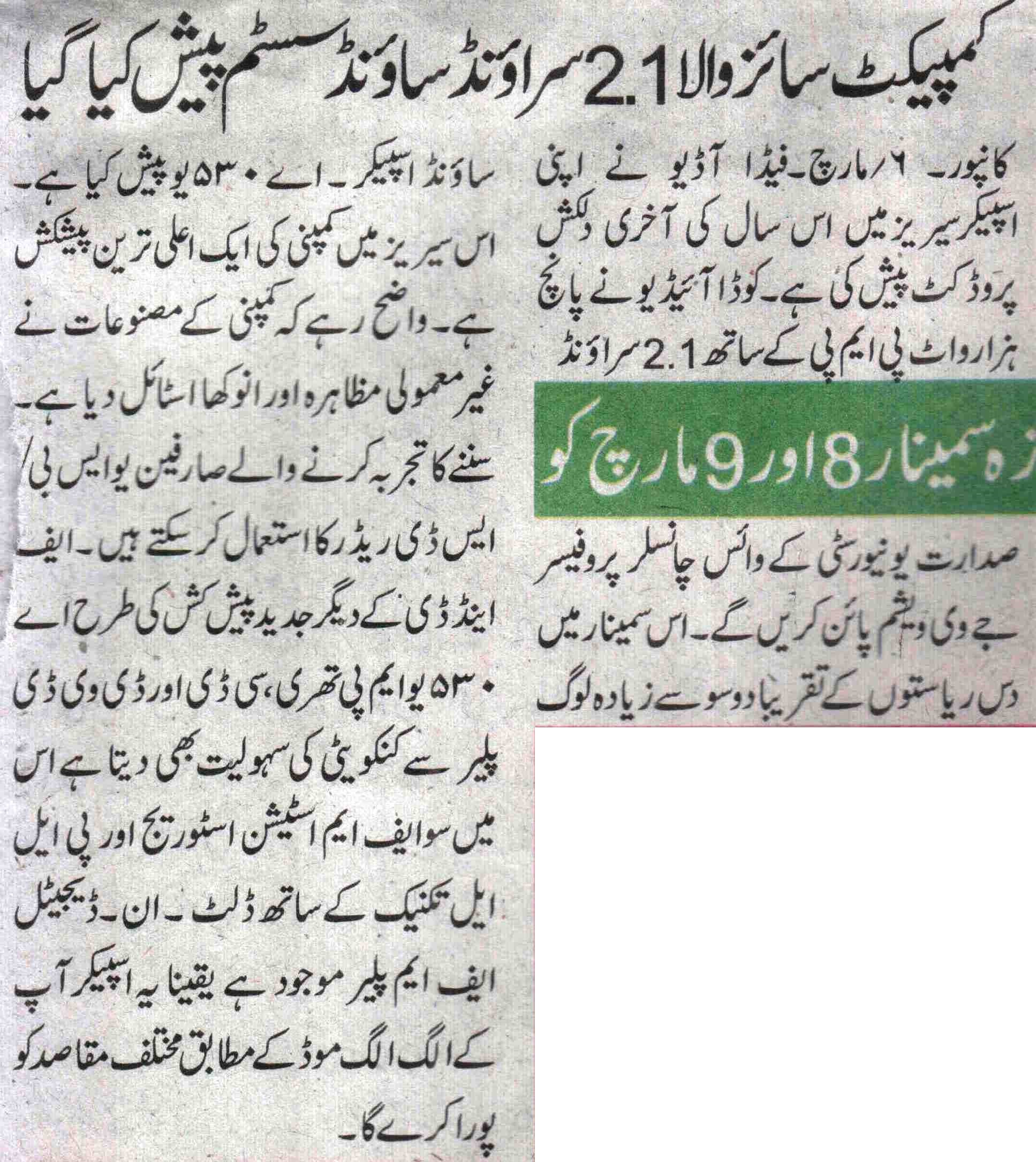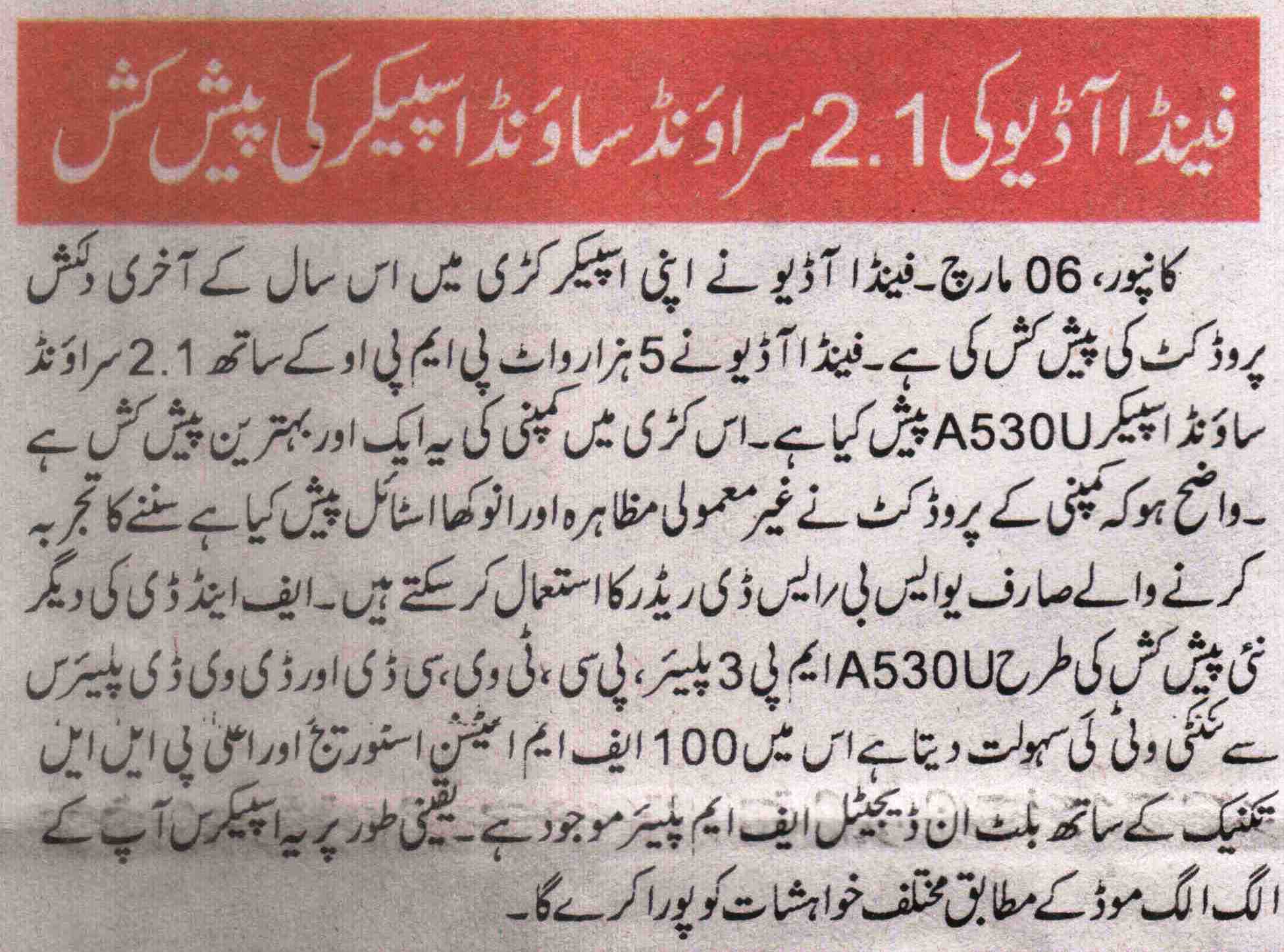 Publication: Siyasat Jadid Headline: F&D's A530U –A 2.1 Surround System– Powerful sound, Compact Size