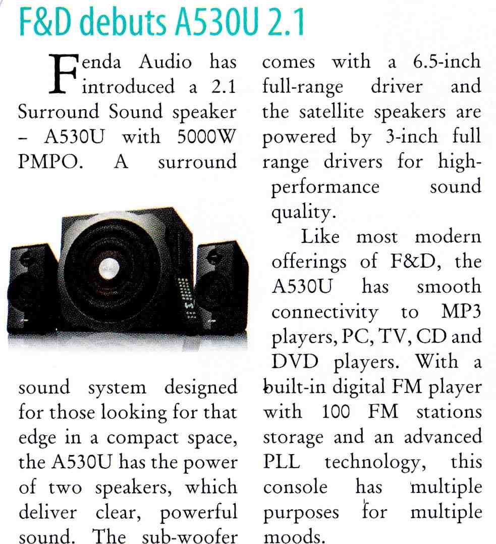 Headline: F&D Unveils 2.1 Surround System Speakers, A530U