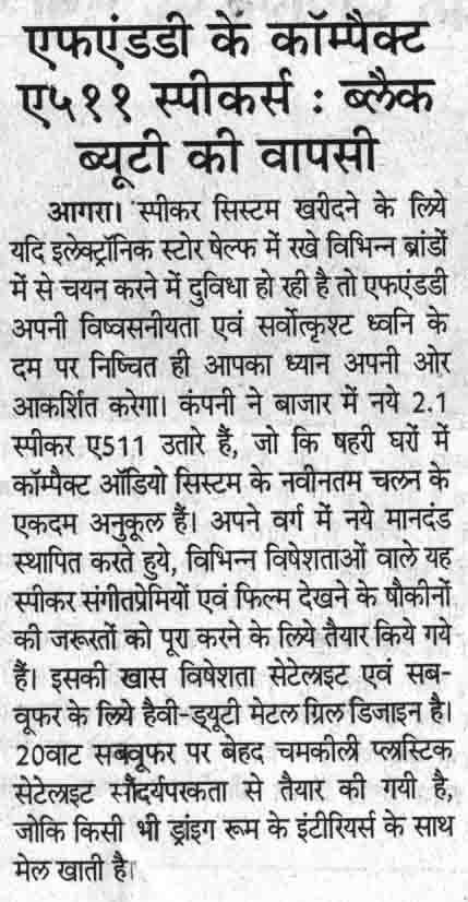Publication: Tamil Times Headline: Compact can be cool too : F&D's A511 brings the beauty back to black