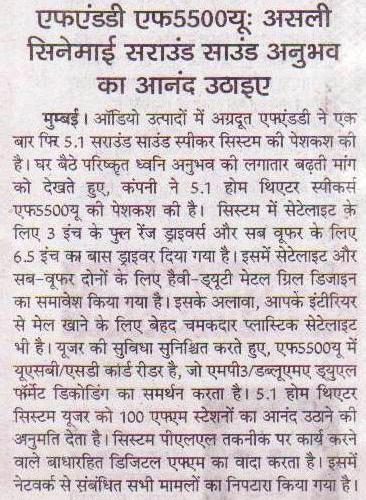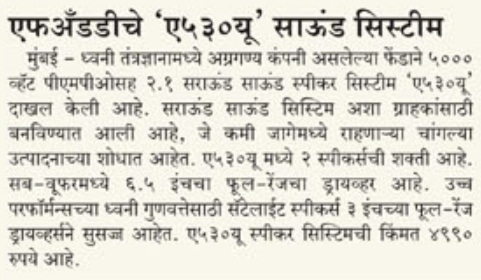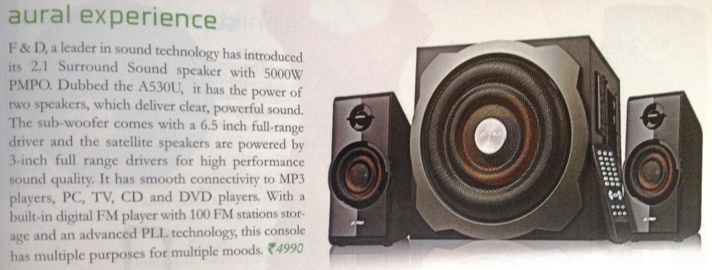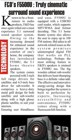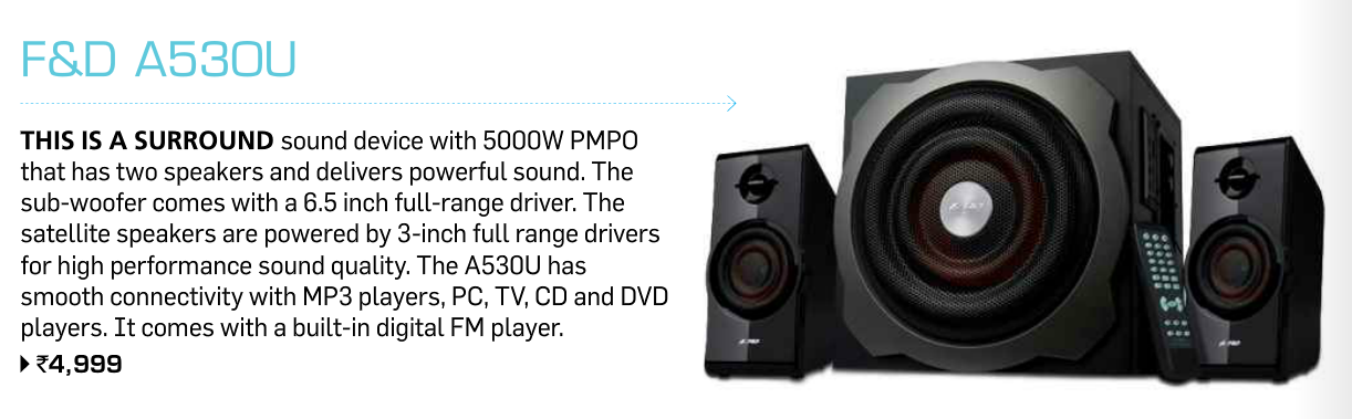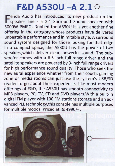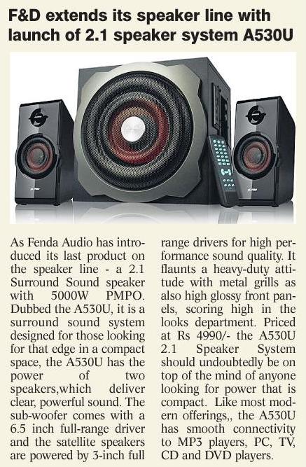 Publication: Arth Prakash Headline: F&D's A530U - A 2.1 Surround System - Powerful Sound, Compact Size