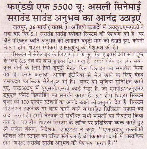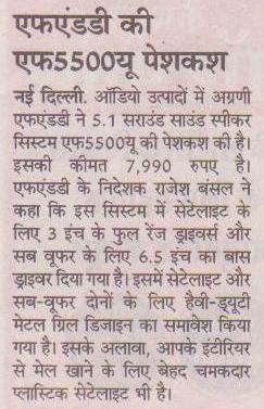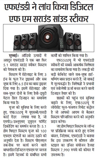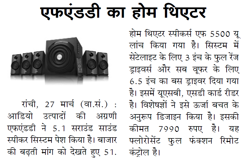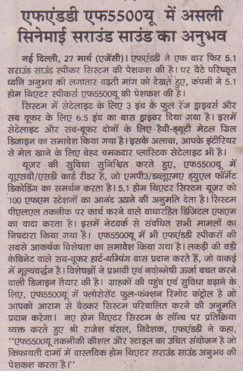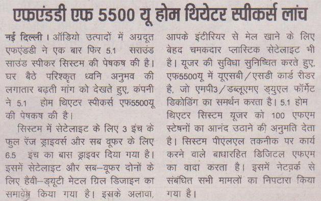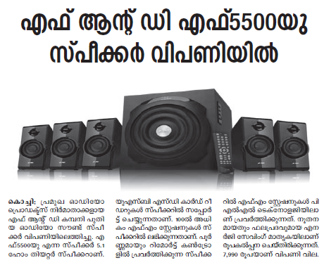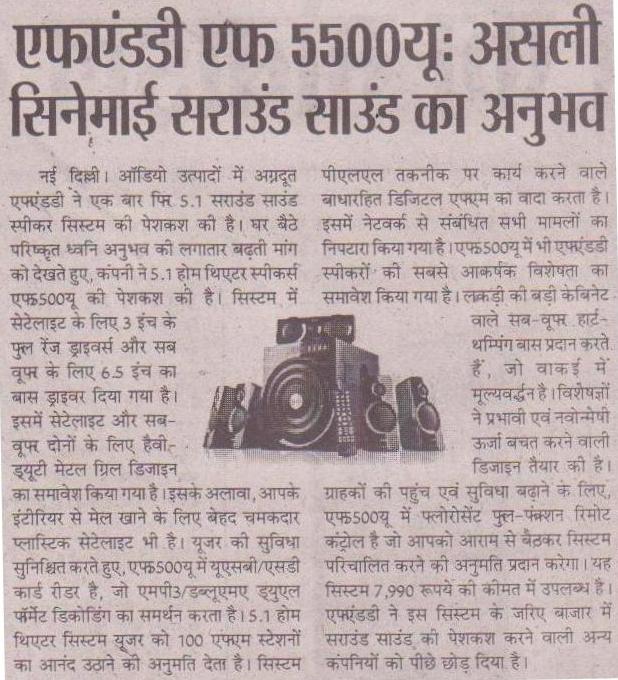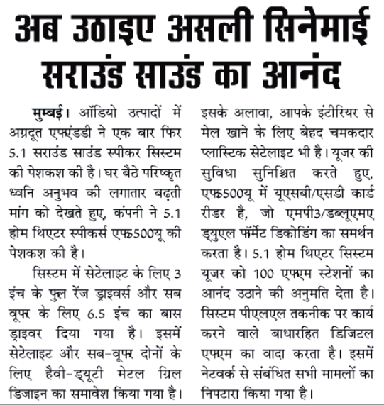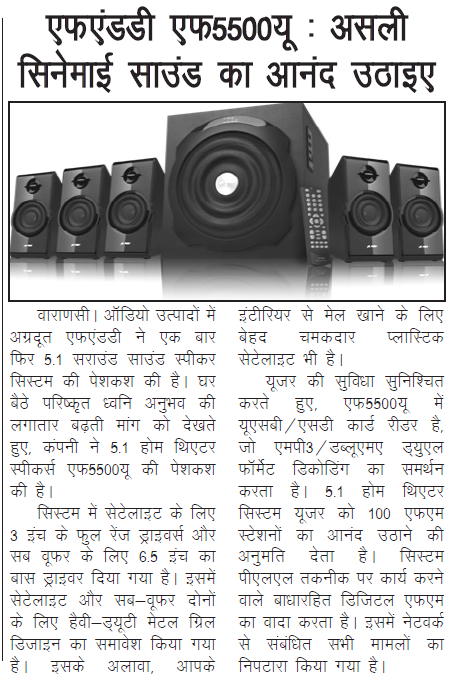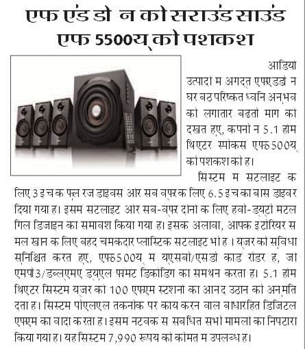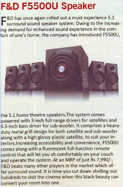 Publication: Absolute India Headline: F&D extends its speaker line with launch of 2.1 speaker system A530U