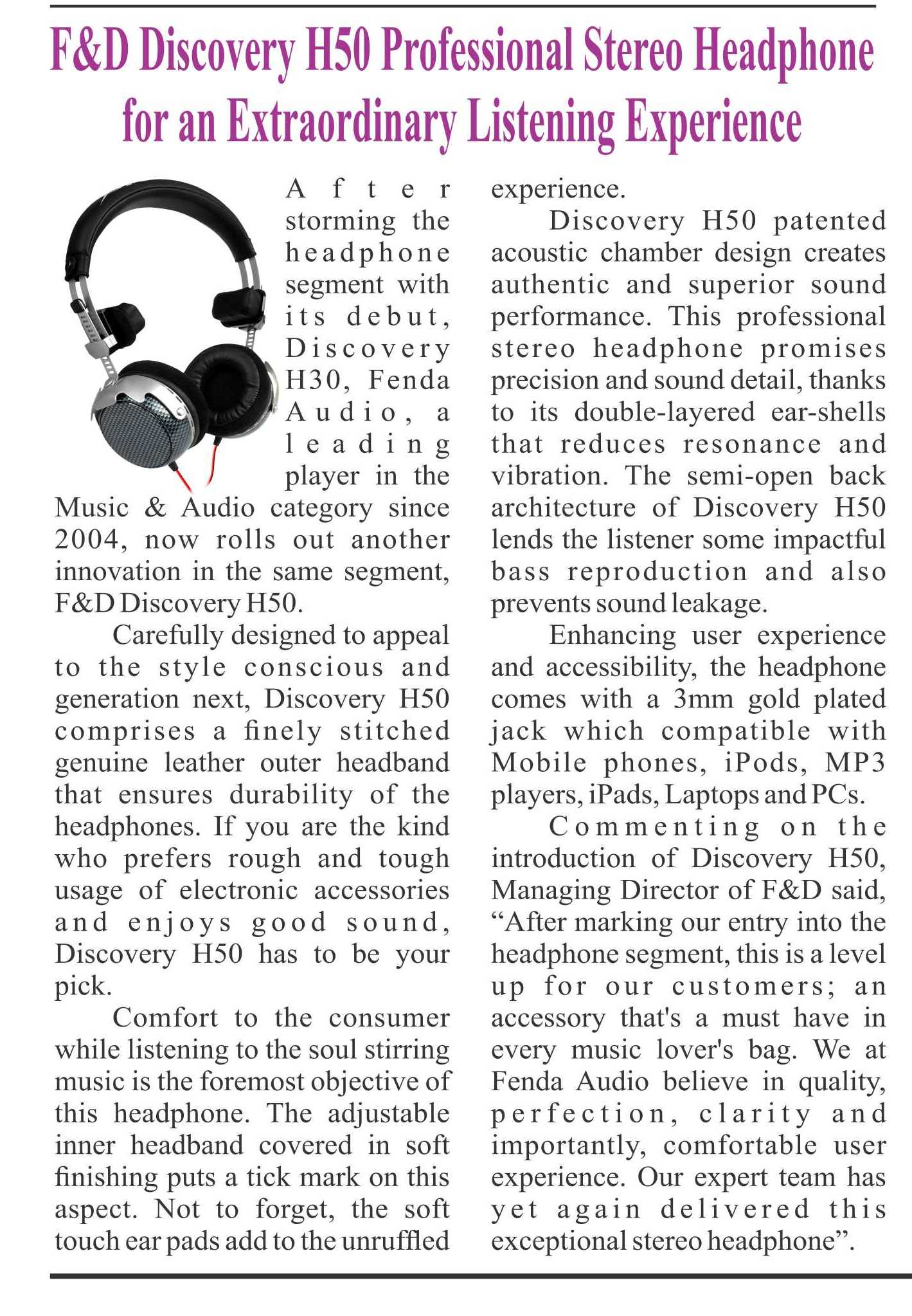 Headline: F&D Discovery H50_Professional stereo headphone for an extraordinary listening experience