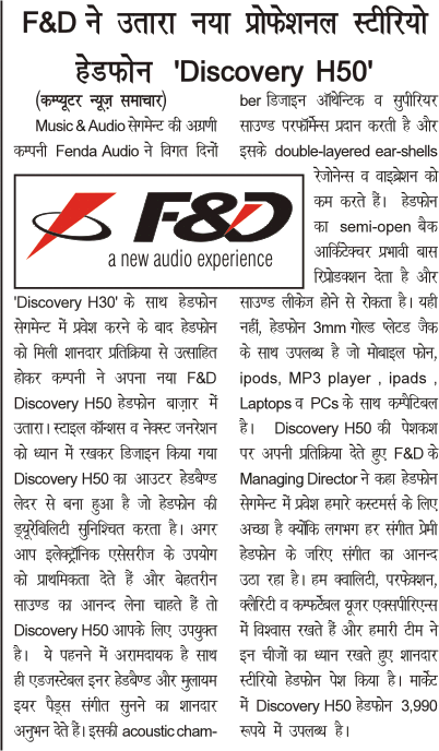 Headline: F&D Discovery H30 : Professional stereo headphones for the Gen Next
