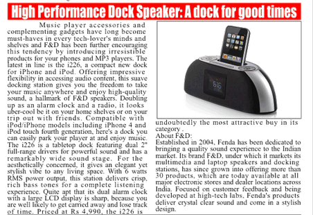 Headline: High Performance Dock Speaker : A dock for good times
