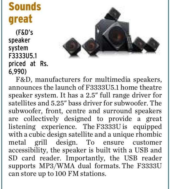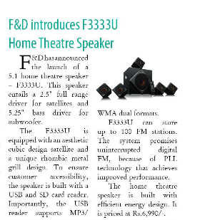 Headline: F&D introduces F3333U Home Theatre Speaker