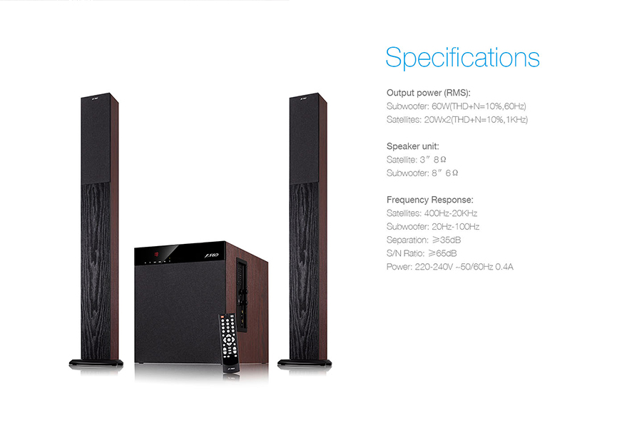 Power output: 20Wx2+60W (RMS)